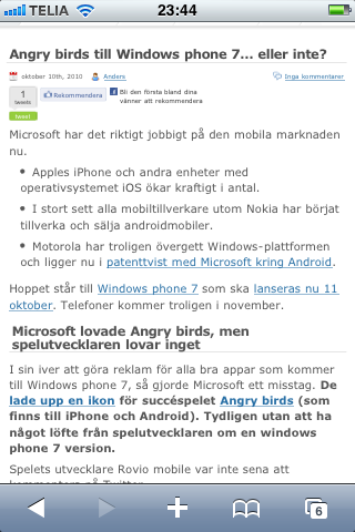 Frågan är om det är bra eller dåligt med en iPhoneanpassad layout på bloggar?